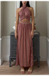 The Bella Halterneck top is an updated version of the Isla Top. The Bella Top features a ribbed, multicolored pattern in vertical stripes and a bust-enhancing neckline and adjustable waistband. The extra long straps that cover the chest area make it possible to style the top as a halter neck, v-neck, one shoulder, two straps and many other ways. The design has three buttons at the neck and ties at the waist for an adjusted fit. Seen on Bella Hadid, Amelia Gray, Danielle Bernstein.