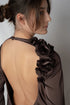 The Costanza dress covers shoulders and arms but emphasizes the back, making it surprisingly elegant and refined. With long bell-shaped sleeves, slight flair on the hem and a midi i.e. ankle-length dress, this garment in all its simplicity is nevertheless completely unique. The back is decorated with pretty and graceful roses in true Emmy Boo style.