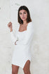 Short figure-hugging and stretchy dress with a square neckline and long sleeves from the Spanish The Cotton Brand. Available in black or white.