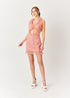 Mini dress in elastic material with frills and cut-out and decorative ribbon that can be tied to a bow. The back gives a slightly cooler appearance with its wrestler back in contrast to the sugary. Made of 96% Polyester and 4% Elastane. Care advice: Dry cleaning only.