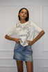 Den rundhalsade designen och de korta ärmarna ger en tidlös silhuett, medan det vackra broderiet med texten “AMOUR” och detaljer av fåglar, fjärilar och naturmotiv tillför en romantisk känsla som sticker ut.