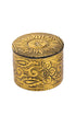 Fin liten ask i trä dekorerad i guldfärgad metall med sol och symboler. Söt som prydnad eller för förvarning av exempelvis ringar och mindre örhängen.
