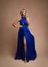 Denna eleganta aftonklänning är designad för att smickra figuren med sin smala passform som vackert framhäver kroppens kurvor. Den höga slitsen längs låret ger en sofistikerad men djärv känsla samtidigt som den erbjuder optimal rörelsefrihet. Klänningens topp har en spektakulär öppen rygg, där en diskret och stilren dragkedja löper längs ryggraden – en detalj som adderar en modern och sofistikerad touch.
