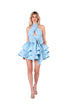 Fantastiskt välgjord klänning från italienska Kuea Italian Style, klänningen har cut-out och halterneck med öppen rygg, livet öppnas och stängs med dold dragkedja på ryggen. Kjoldelen är volymiös med volanger lager på lager och framtill pryds midjan med en stor rosett. Passar alla festligheter! Du kommer garanterat dra blickarna till dig!
