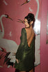 Paris Sequin Mini Dress från Jaded Rose – grön paljettklänning med utsvängda ärmar och djup rygg. Perfekt för fest, cocktail och nyår.