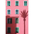 Lyft rummet med ett modernt konstverk som känns lika drömskt som Medelhavets kvällssol. Denna tavla i akrylglas fångar en rosa fasad med smaragdgröna fönsterluckor och en palm vars silhuett dansar i ljuset – ett motiv som omedelbart skapar semesterkänsla och färgboost i hemmet.