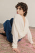 Med sin mjuka mohair-look och krispiga vita ton är denna stickade tröja lika klassisk som mångsidig. Den djupa ryggringningen skapar en sofistikerad kontrast till den enkla framsidan, medan knuten bak ger en stilfull detalj som lyfter looken. Perfekt att bära till denim för en avslappnad outfit eller till kjol för en mer dressad känsla.